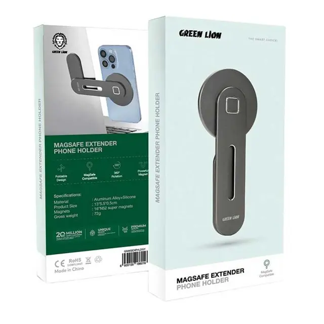 استمتع براحة لا مثيل لها مع حامل الهاتف الموسّع MagSafe 6016 من Green Lion، المصمم لتعزيز تجربة استخدامك دون استخدام اليدين. هذا الحامل متوافق مع تقنية MagSafe، ويثبت بإحكام على هاتفك باستخدام 16 مغناطيسًا قويًا من نوع N52 لضمان ثباته.