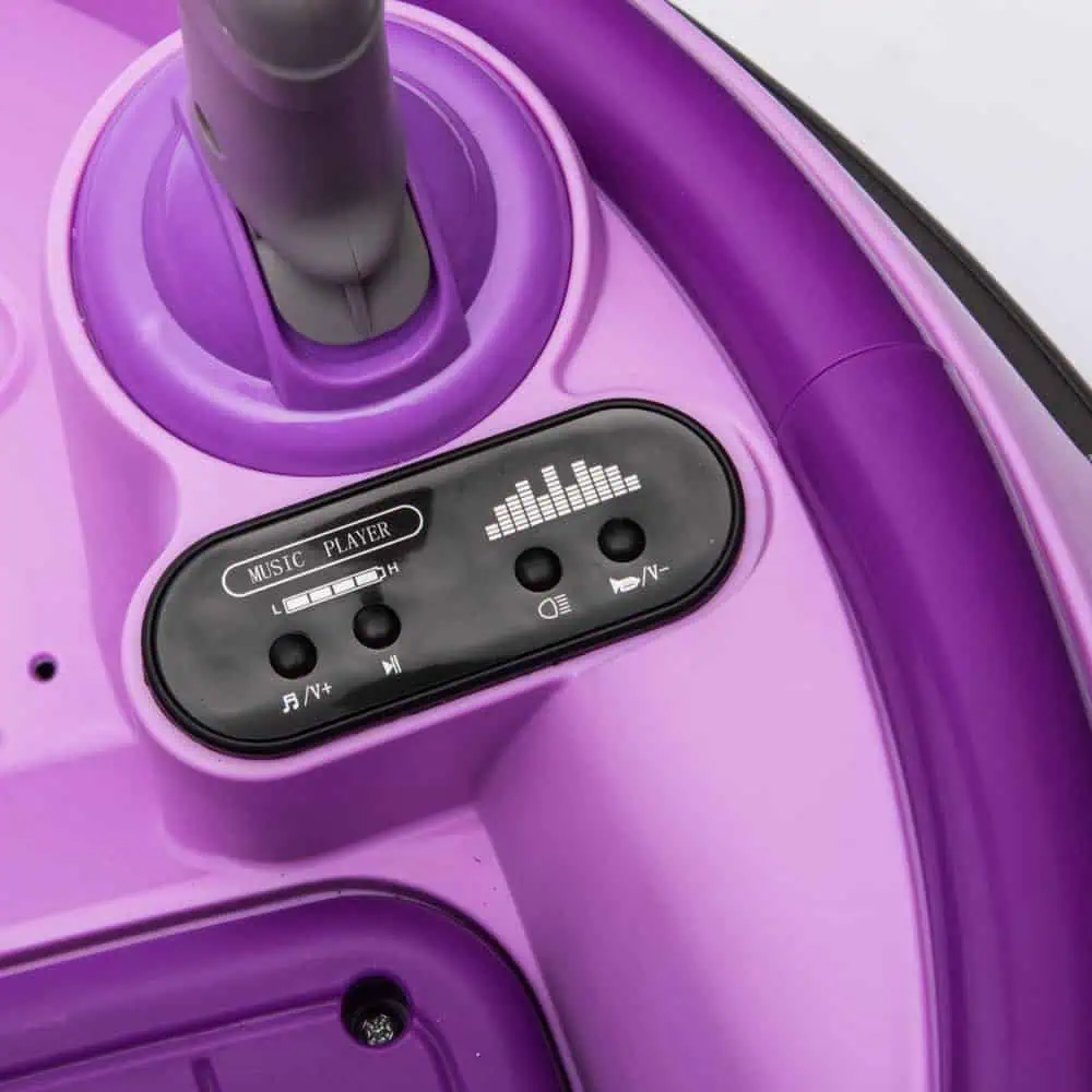 نظرة عامة: نقدم لكم سيارة الركوب الدائرية المزودة بمشغل MP3 باللون الأرجواني النابض بالحياة! هذه السيارة التفاعلية مثالية للأطفال الصغار، حيث توفر تجربة قيادة ممتعة وآمنة.