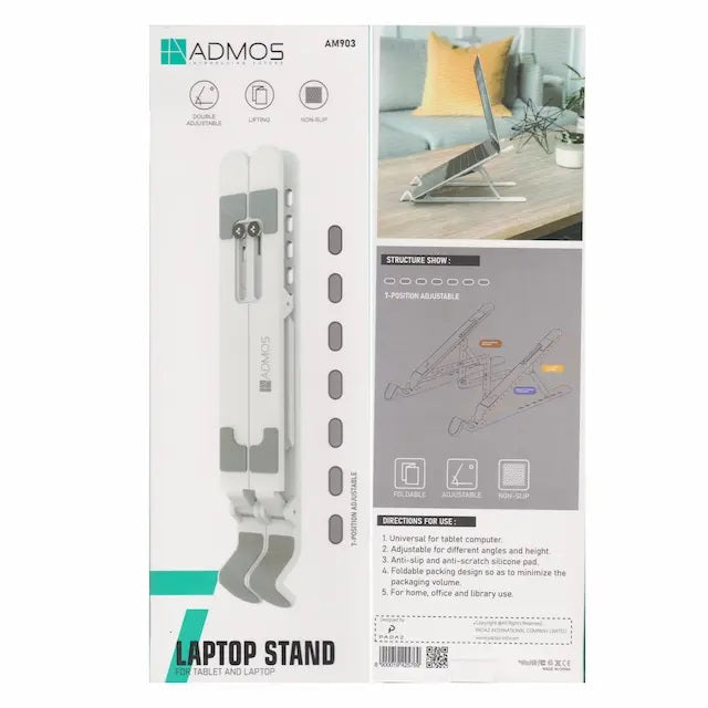 قم بتحديث مساحة العمل لديك باستخدام حامل الكمبيوتر المحمول Admos AM903، الذي يجمع بين الوظائف والتصميم الأنيق لجميع احتياجات أجهزتك!